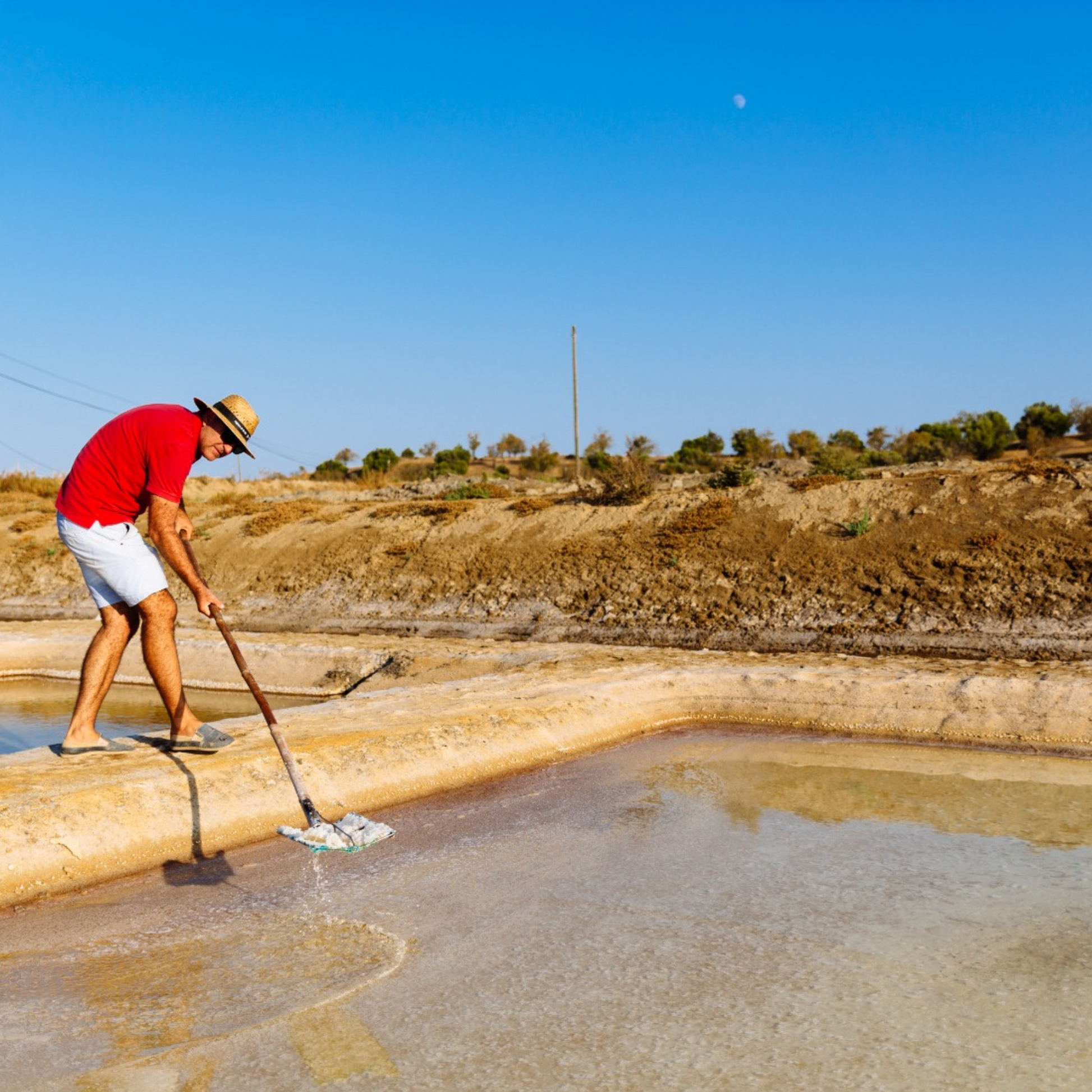 The Fleur de Sel appears only on days with particular weather conditions and is harvested from the surface of the water with a handmade tool called “rodo-coador”. The crystals must be scooped from the surface the very same day to keep them from falling overnight. This ensures that their purity and unique characteristics, that are so appreciated by the world's best chefs, are retained intact.